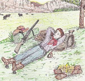I can hear a lobo hollering down where the longhorns graze.